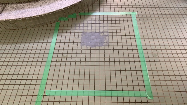 公衆浴場の床のタイルが一部めくれてきていたので張替しました。